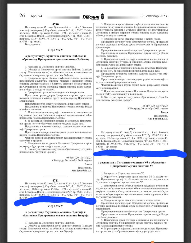 U nedavnoj objavi u Službenom glasniku, stigla je vanredna vest o imenovanju privremenog organa za opštinu Ćuprija. Ova vest stigla je kao rezultat zvaničnog raspuštanja opštine Ćuprija, a novoimenovani privremeni organ preuzima odgovornost za obavljanje tekućih pitanja u opštini.