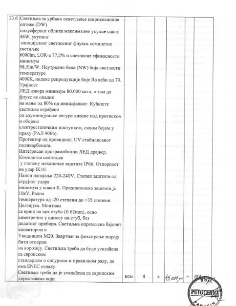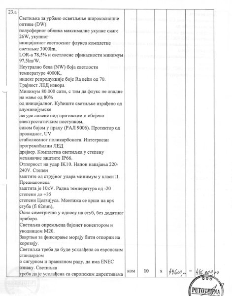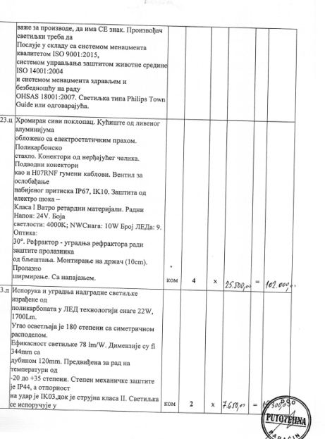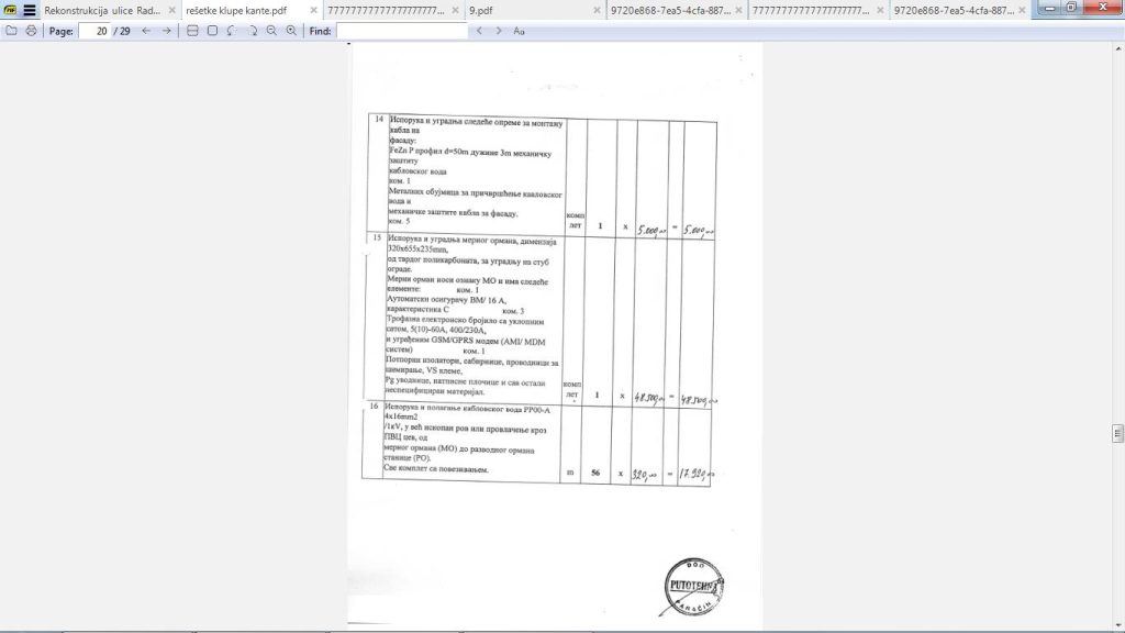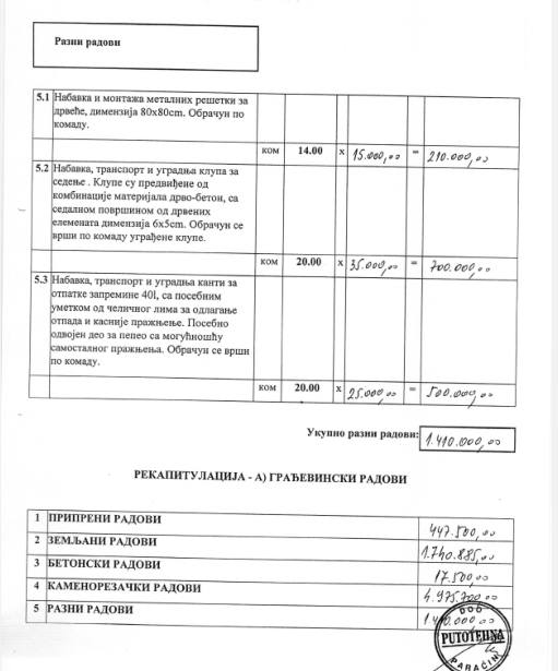 – klupa za sedenje plaćena 35,000 dinara, ukupno 700.000 dinara.