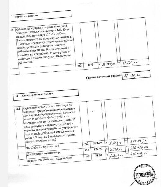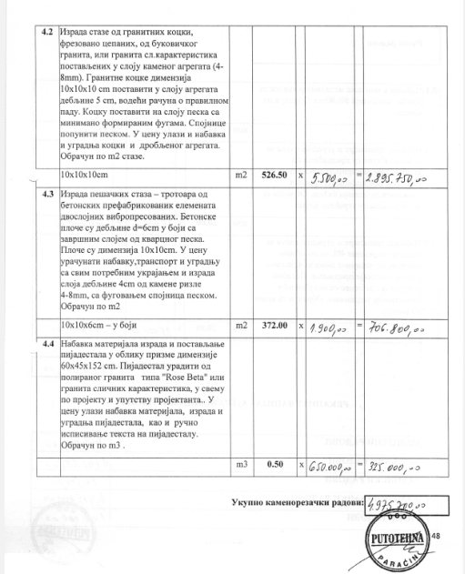 – kvadrat pločica plaćen 12.200 dinara, ukupno 757.620 dinara.