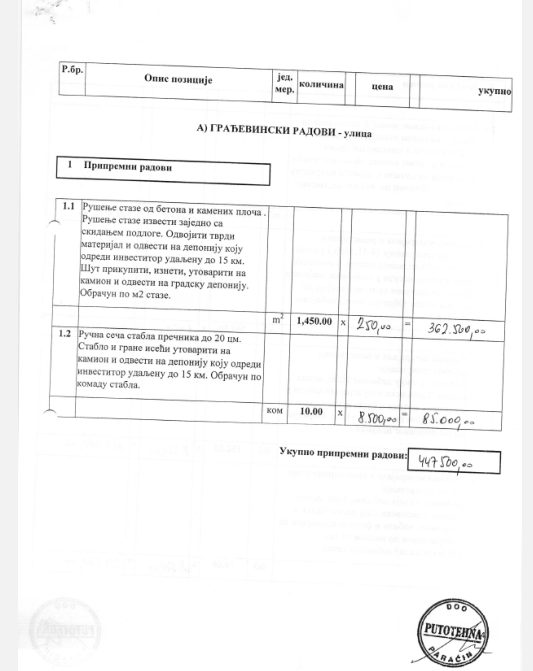 – rušenje staze i odvoz plaćen 362.500 dinara