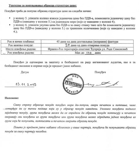 Rok trajanja posla 110 dana ( manje od tri meseca), maksimalno 120 dana. (trajalo preko 7 meseci)