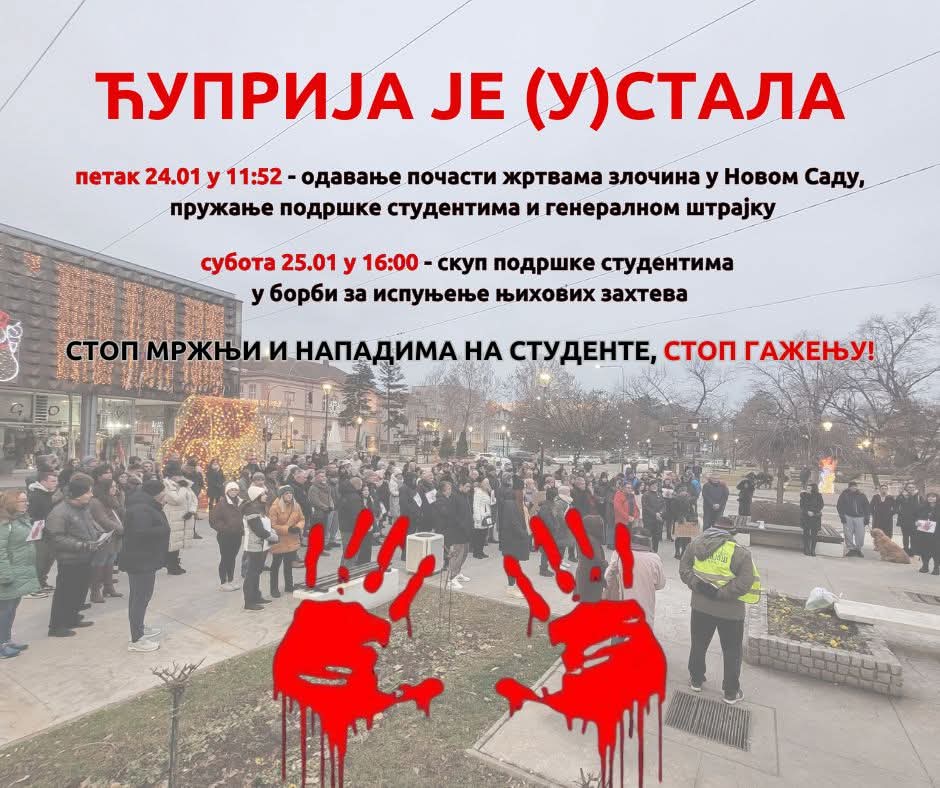 Ćuprija ustaje: Za žrtve, pravdu i solidarnost